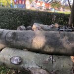 De boomstam is 2,5 meter lang en 70 cm doorsnee. Het hout van deze bijzondere boom is nog beschikbaar en we willen er iets moois voor het dorp van maken, bijvoorbeeld: